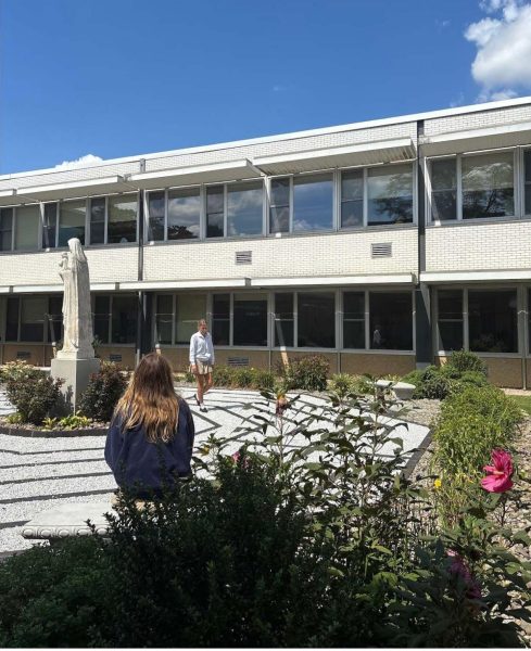 A labyrinth, built in part by Mount alumna Ellen Rosa-Bian Cericola ’82 P ’09, was made possible through fundraising led by Mrs. Maria Termini-Romano ’89 P ’25, Mrs. Jenny Forti, P ’21, and other parents involved in planning the Mount Magic event at the Linc last February, which raised more than $86,000.