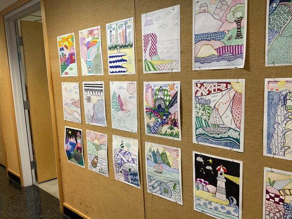 While the student lockers bring festive energy, even more student spirit can be seen on the walls of the art wing. Projects ranging from cyanotype prints, to pottery, to zentangles bring life to the art wing.